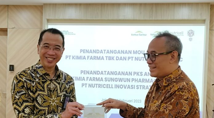 POULTRYINDONESIA, Jakarta - Sebagai upaya pengembangan bisnisnya, PT Kimia Farma Tbk berkolaborasi dengan PT Nutricell Pacific. Kerja sama ini ditandai dengan penandatanganan nota kesepahaman (MoU) antar kedua pihak dan perjanjian kerja sama antara kedua anak usahanya, yang dilakukan di kantor pusat PT Kimia Farma Tbk, Gambir, Jakarta, Selasa (14/2).