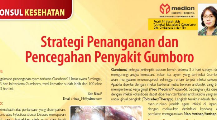 Terima kasih atas pertanyaan yang disampaikan. Gumboro atau Infectious Bursal Disease merupakan penyakit yang disebabkan oleh virus dari famili Birnaviridae, genus Avibirnavirus. Biasanya penyakit ini menyerang ayam muda berumur 3...