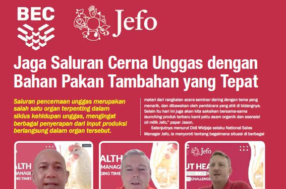Saluran pencernaan merupakan rumah dari berbagai macam bakteri yang sifatnya dapat membantu ternak untuk mencerna pakan, maupun bakteri patogen yang mampu menyebabkan berbagai macam penyakit. Mengingat pentingnya kesehatan saluran pencernaan tersebut, maka PT BEC Feed Solutions Indonesia bekerjasama dengan Jefo Nutrition, menggelar seminar daring melalui Aplikasi Zoom Selasa, (22/3) dengan tema “How We Can Manage This In