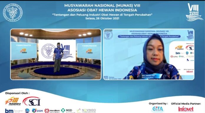 POULTRYINDONESIA, Jakarta - Asosiasi Obat Hewan Indonesia atau Asohi menggelar Musyawarah Nasional (Munas) ke-VIII secara daring pada Selasa, (26/10). Setelah melalui serangkaian acara, Munas hari ini menghasilkan keputusan bahwa Drh. Irawati Fari kembali terpilih menjadi Ketua Umum Asohi periode 2021-2025, setelah sebelumnya mengemban amanah pada posisi yang sama untuk periode 2015-2020.