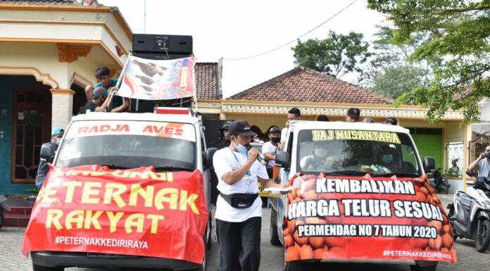 POULTRY INDONESIA, Kediri- Bersamaan dengan Hari Kesaktian Pancasila (1/10) paguyuban peternak petelur se-kecamatan : Ringinrejo, Kabupaten Kediri, pagi hari pembagian bingkisan telur di Terminal sambi, dengan 500 paket bingkisan. Selanjutnya, aksi diteruskan secara berpindah, dengan keliling kampung-kampung.
