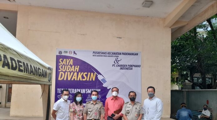 POULTRYINDONESIA, Jakarta - PT Charoen Pokphand Indonesia Tbk (CPI) bekerja sama dengan Kecamatan Pademangan, DKI Jakarta melaksanakan program percepatan vaksinasi COVID-19 di Kelurahan Ancol, Selasa (15/6). Kegiatan percepatan vaksinasi masyarakat ini merupakan bagian dari CSR perusahaan di masa pandemi COVID-19 yang dimulai sejak tanggal 15 Juni-25 Juni 2021.