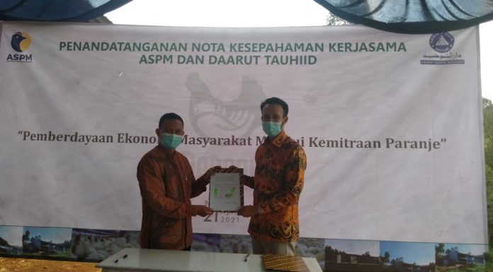 POULTRYINDONESIA, Bandung - Semangat ekonomi berbagi melatarbelakangi PT ASputra Perkasa Makmur (ASPM) melakukan penandatanganan nota kesepahaman (MoU) dengan Yayasan Daarut Tauhid milik ulama kondang, KH. Abdullah Gymnastiar atau yang dikenal dengan sebutan Aa Gym.