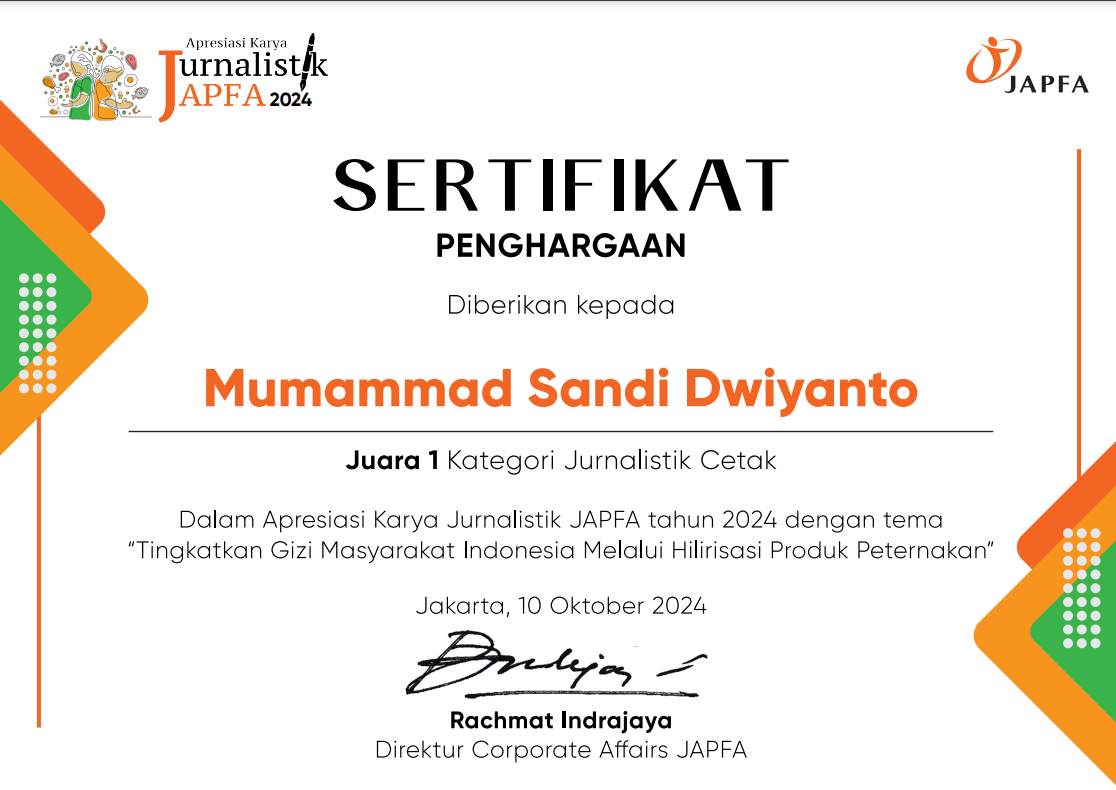 Jurnalis Poultry Indonesia, Berhasil Menjadi Juara Pertama di AKJJ 2024 JAPFA
