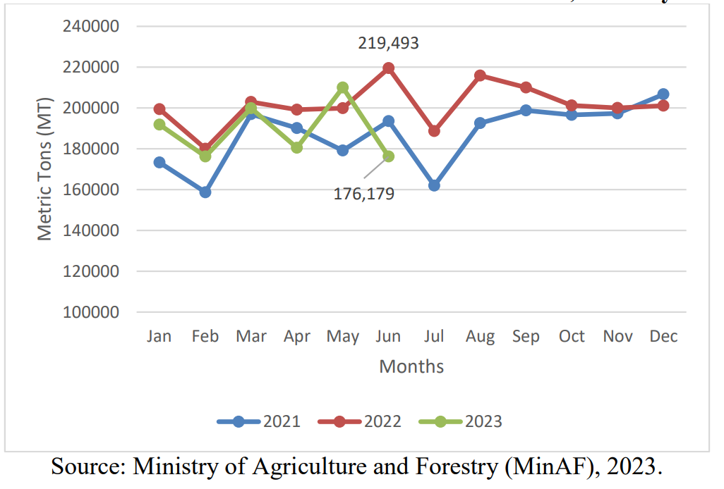 Beranda Pasang Surut Perkembangan Perunggasan Turki Grafik 1 Produksi Daging Ayam Turki dari 2021 hingga 2023 (Bulan)
